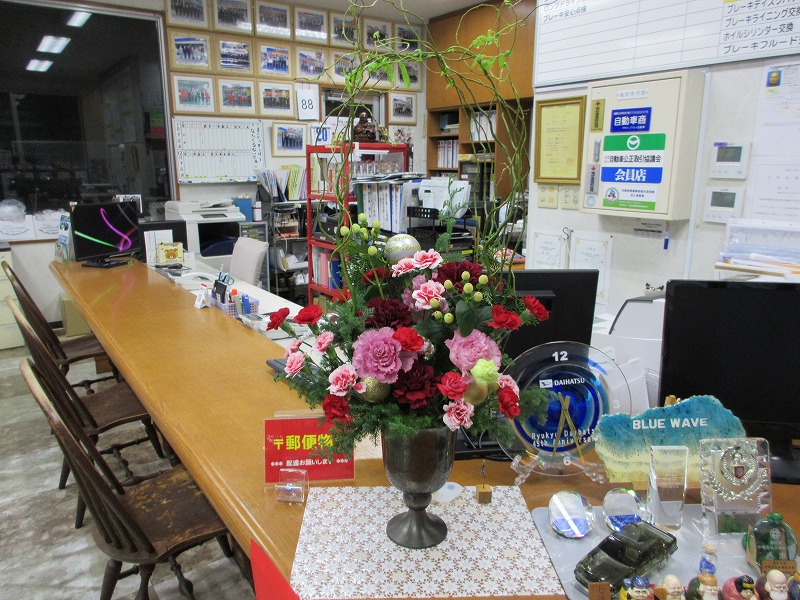 今週の花! 投稿日 2025年12月20日 著者 ブルーウェーブHP担当 カテゴリー お知らせ 10年乗れる新車販売中のブルーウェーブ小禄バイパス 営業の新垣学です。 毎週木曜日に生け花をお願いしています。 フラワースタジオ グロウ 新垣さんの作品です。